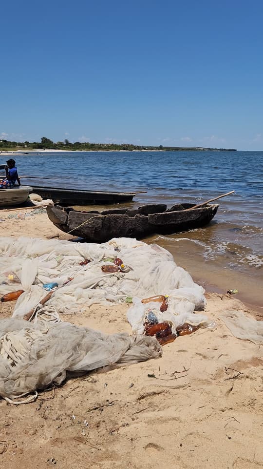 Many of the fish brought ashore are barely the length of a hand—immature and far from breeding age. Scattered along the sandy bank are mosquito nets, long ropes tied to empty bottles, and improvised sticks and poles. These are not remnants of ordinary fishing tools but evidence of a growing shift toward destructive and illegal methods that threaten one of Zambia’s most important wetlands.