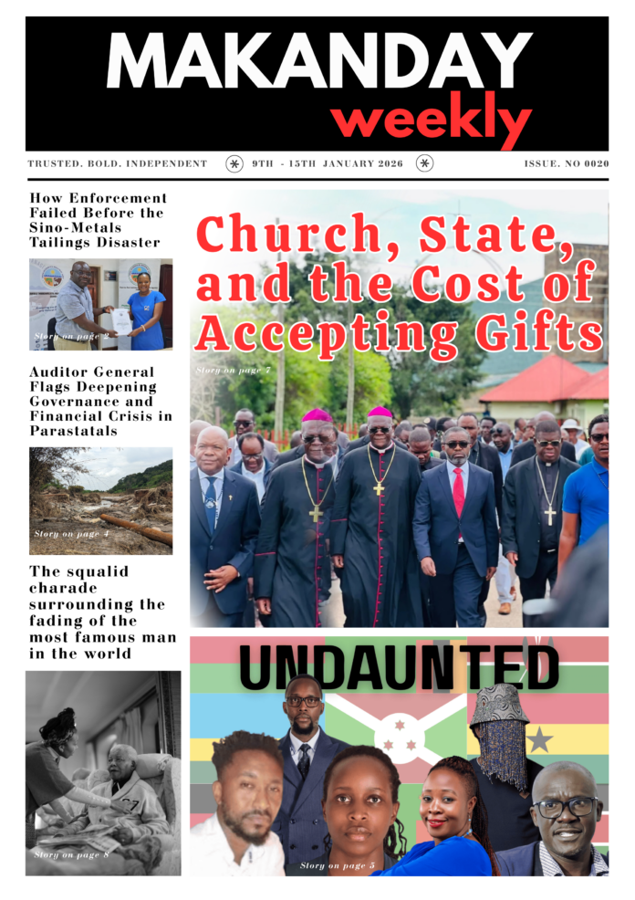 HomeMakanDay E-NewsMakanDay E-NewsMAKANDAY WEEKLY! MakanDay E-News MAKANDAY WEEKLY! By Editor January 9, 2026 0 88 Share FacebookTwitterPinterestWhatsApp MakanDay E-News Weekly paper 0020Download Share this:TwitterFacebookLike this:Like Loading... Related Discover more from MAKANDAY Subscribe to get the latest posts sent to your email. Type your email… Subscribe Share FacebookTwitterPinterestWhatsApp Previous articleAs EU Pledges €200m, Silence Clouds the US Role in Lobito Corridor Editorhttp://www.gracezambia.blogspot.com/ RELATED ARTICLES MakanDay E-News MAKANDAY WEEKLY! January 2, 2026 MakanDay E-News MAKANDAY WEEKLY! December 26, 2025 MakanDay E-News MAKANDAY WEEKLY! December 19, 2025 Leave a ReplyCancel reply Most Popular As EU Pledges €200m, Silence Clouds the US Role in Lobito Corridor January 9, 2026 How Enforcement Failed Before the Sino-Metals Tailings Disaster January 7, 2026 How a US$200 Million Project Collapsed into Rust, Theft, and Silence January 7, 2026 The Reality of Gold Cooperatives in Mpika January 5, 2026 Load more Recent Comments