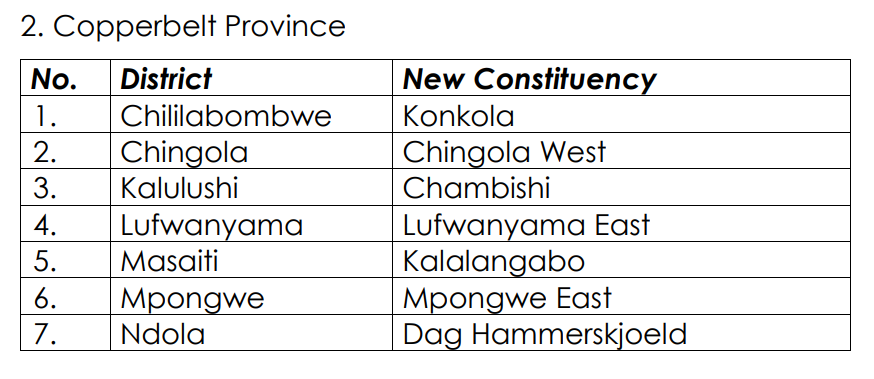 Copperbelt (7 New Constituencies)
