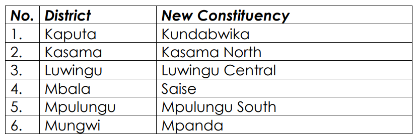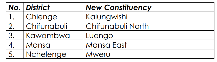 Luapula Province (5 New Constituencies)