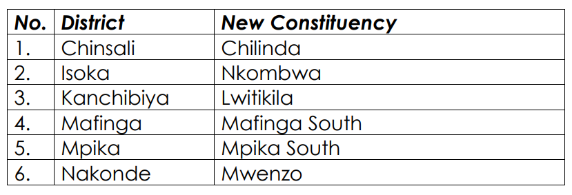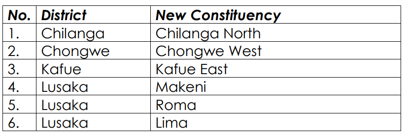 Lusaka Province (6 New Constituencies)