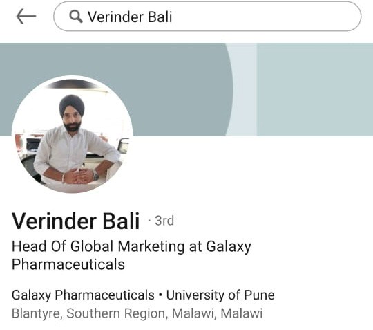 Online, some company employees still list Galaxy Pharmaceutical and Surgical Logistics Ltd as their employer. The phone number recorded in the PMRA registry for GPSL supposedly belongs to Felix Thyoka, but the PIJ was able, using mobile money records, to trace it to Verinder Bali. Bali’s LinkedIn profile identifies him as Head of Global Marketing at Galaxy Pharmaceuticals and not GPSL.