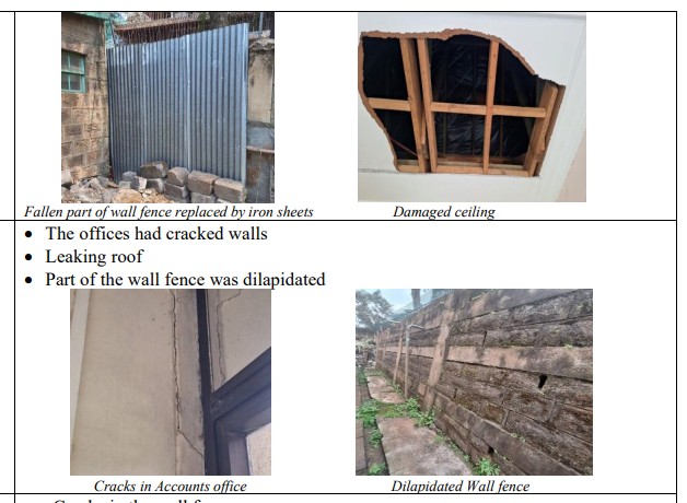 In Kenya, a vacant double-storey government property on Ngong Road in Nairobi had a collapsed wall fence, temporarily replaced with iron sheets. The building also showed roof leakages and damaged bathrooms, even as it sat unused.